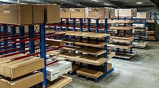 Somit hat die Raumnutzung in der Halle von FRIES tatsächlich ein neues Level erreicht: Bisher wurde in dem Hallenbereich nur am Boden gearbeitet, die Raumhöhe blieb ungenutzt. Durch die Lagerbühne konnte ein zusätzlicher Arbeitsbereich geschaffen werden, ohne dass eine neue Halle gebaut werden musste. Die gewonnenen Lagerkapazitäten auf der Bühnenfläche werden in Form der Blocklagerung so effizient wie möglich genutzt. Das alte Kragarmregal wird übrigens weiter eingesetzt – hier lagern jetzt Waren, auf die einzeln zugegriffen werden muss und die daher nicht für eine Blocklagerung geeignet sind.