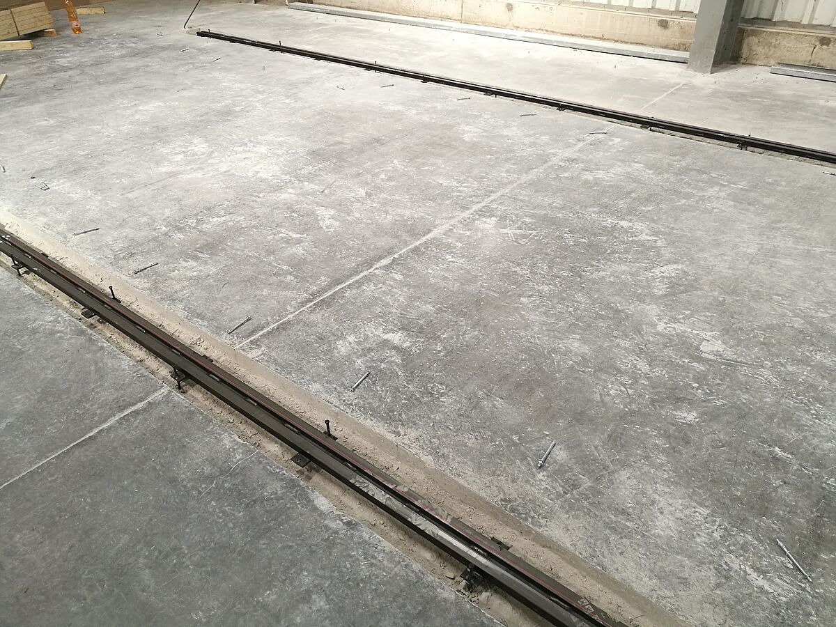 Das neue Lager für Küchenarbeitsplatten besteht aus insgesamt sieben Regalzeilen. Jede Zeile ist 6.600 Millimeter hoch, 3.300 Millimeter lang und besteht aus jeweils vier Ständern, an denen neun Kragarme flexibel eingehängt sind. So ergeben sich insgesamt zehn Lagerebenen – die unterste Ebene liegt auf den Ständerfüßen. Die äußeren Zeilen sind einseitig ausgeführt und am Boden fixiert, die restlichen Zeilen sind auf Verfahrwagen montiert, die sich auf im Boden verlegten Schienen bewegen. Die Verfahrwagen stehen mit den auf ihnen montierten Regalen dicht an dicht. Werden Waren aus einem Regal benötigt, fahren die Verfahrwagen auseinander und öffnen den gewünschten Gang. Die Steuerung erfolgt dabei vom Gabelstapler aus per Fernbedienung – eine manuelle Bedienung ist ebenfalls möglich. Mit einem derartigen System ist eine höchstmögliche Raumnutzung möglich, nahezu 100 Prozent mehr Lagerkapazität können im Vergleich zu herkömmlichen „starren“ Regalen erreicht werden.