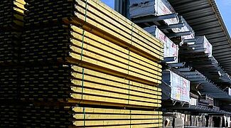 Ein integriertes, zwei Meter tiefes Dach sowie die mit Trapezblech verkleidete Rückwand schützen die eingelagerten Sperrholzplatten vor der Witterung. Eine Herausforderung war, dass die Platten zwischen 3,3 mal 2,4 und 0,6 mal 0,3 Meter groß sind. Um zu verhindern, dass sich Platten bei der Lagerung durchbiegen, hat OHRA die Abstände zwischen den Ständern angepasst und innerhalb des Regals variiert: Zwischen 26 Ständern beträgt er 1.000 Millimeter, zwischen den restlichen 27 Ständern 1.200 Millimeter. So können alle Formate sicher gelagert und der Platz gut ausgenutzt werden.